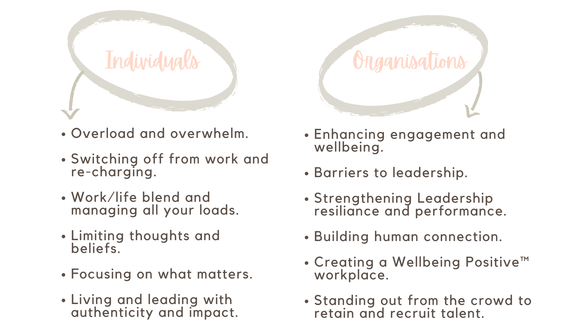 If you are an organisation committed to supporting your people, I can help you enhance and elevate your development suite, and also provide tailored strategic support to help you create a Wellbeing Positive™ workplace.